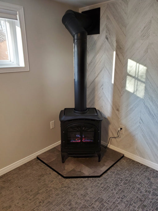 Fireplaces Unlimited Heating & CoolingOur crew installed this beautiful Quadra-Fire Discovery II wood stove to keep this customers basement toasty warm!